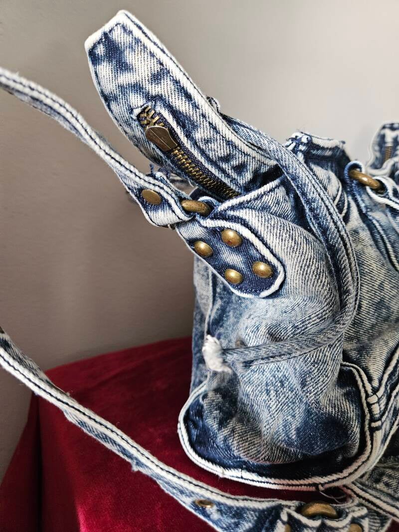 Deze super gave tas van spijkerstof is een echte musthave voor elke outfit! De stoere denim look geeft je stijl een trendy en casual touch, terwijl de tas tegelijkertijd makkelijk te combineren is met zowel een basic als een opvallende outfit.