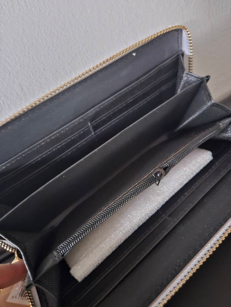 Binnenin is er ruimte voor briefgeld, vakjes voor pasjes en een plek voor muntgeld. Deze portemonnee is zowel functioneel als stijlvol.