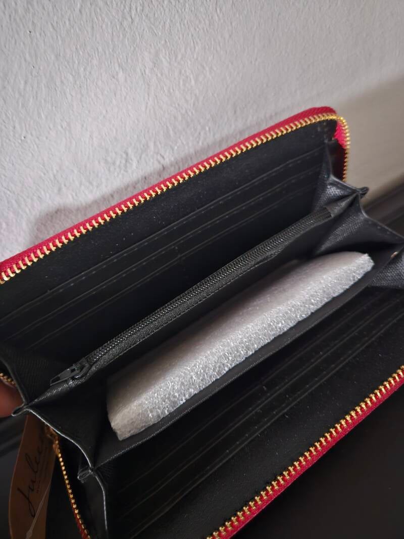 Binnenin is er ruimte voor briefgeld, vakjes voor pasjes en een plek voor muntgeld. Deze portemonnee is zowel functioneel als stijlvol.