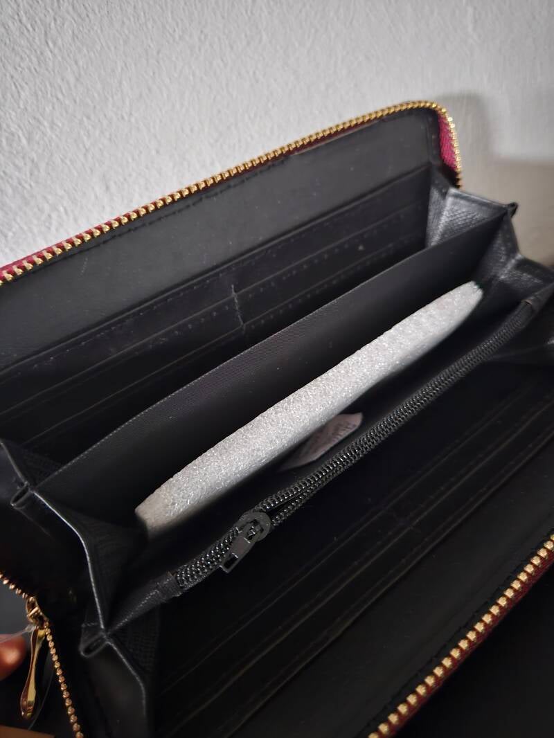 Binnenin is er ruimte voor briefgeld, vakjes voor pasjes en een plek voor muntgeld. Deze portemonnee is zowel functioneel als stijlvol.
