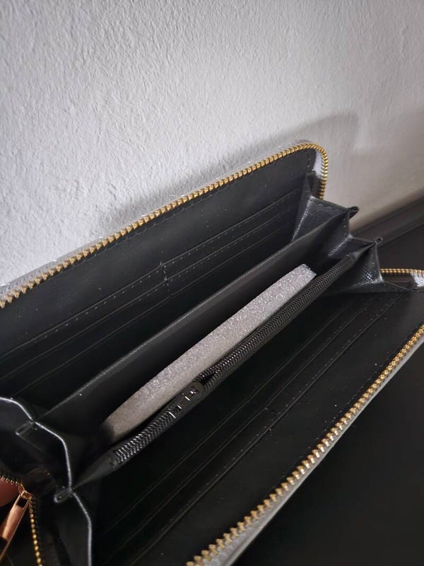 Binnenin is er ruimte voor briefgeld, vakjes voor pasjes en een plek voor muntgeld. Deze portemonnee is zowel functioneel als stijlvol.