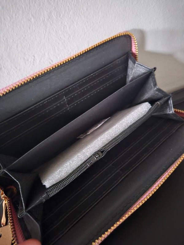 Binnenin is er ruimte voor briefgeld, vakjes voor pasjes en een plek voor muntgeld. Deze portemonnee is zowel functioneel als stijlvol.