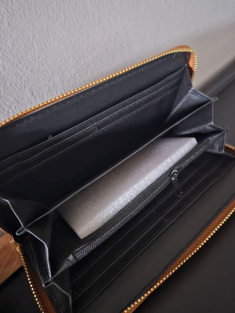 Binnenin is er ruimte voor briefgeld, vakjes voor pasjes en een plek voor muntgeld. Deze portemonnee is zowel functioneel als stijlvol.