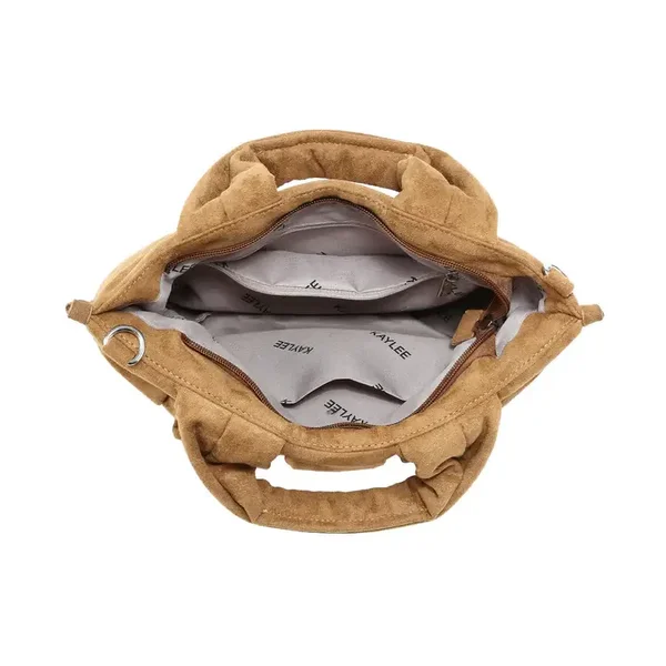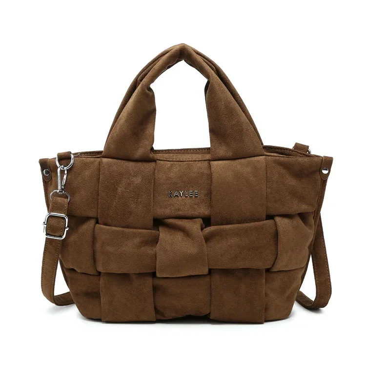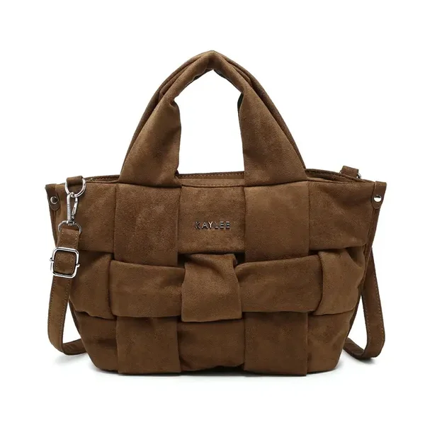 Handtas met suède-look en geweven design. Compact en gestructureerd, ontworpen voor dagelijks gebruik en om casual, urban looks compleet te maken.